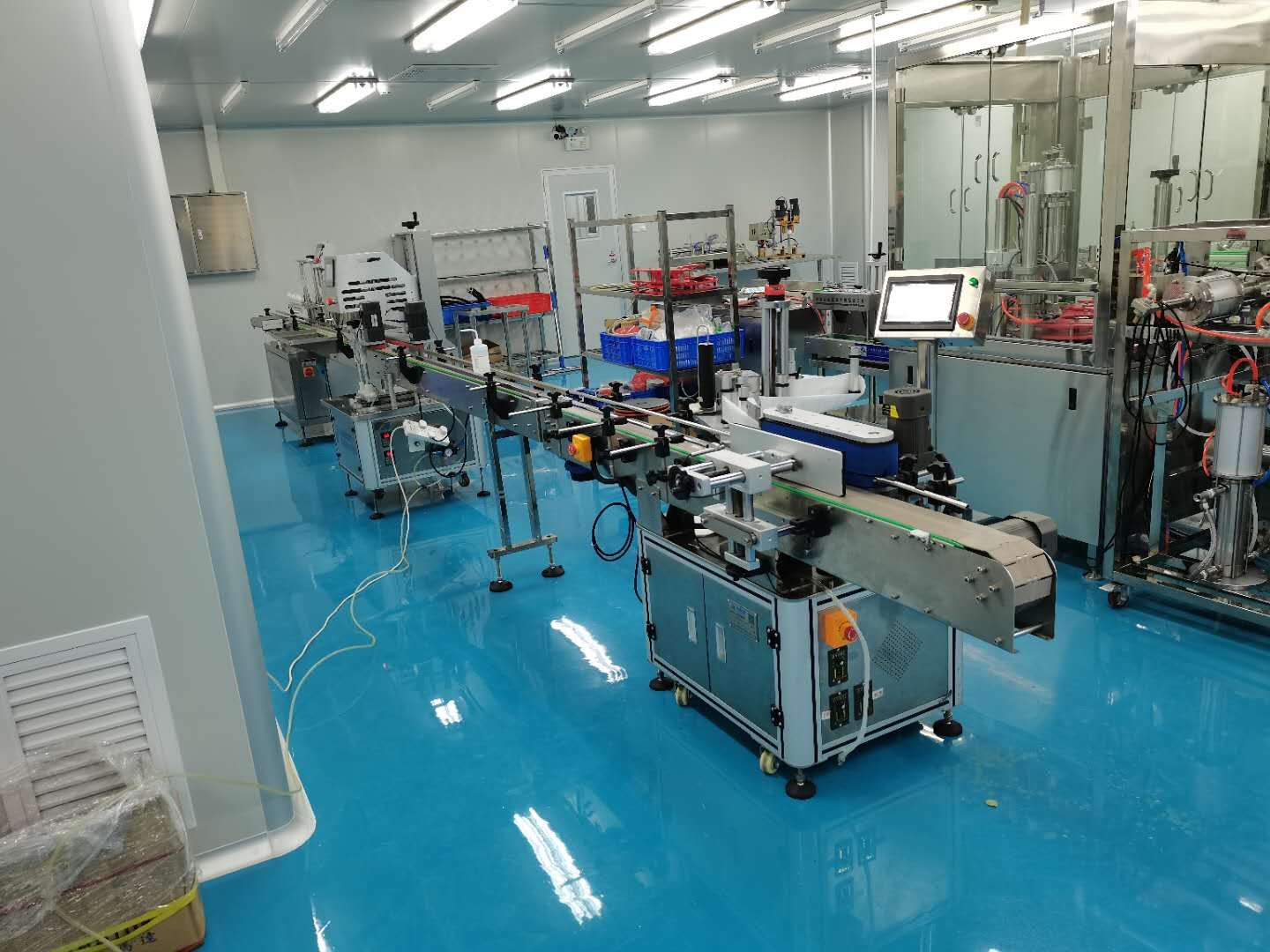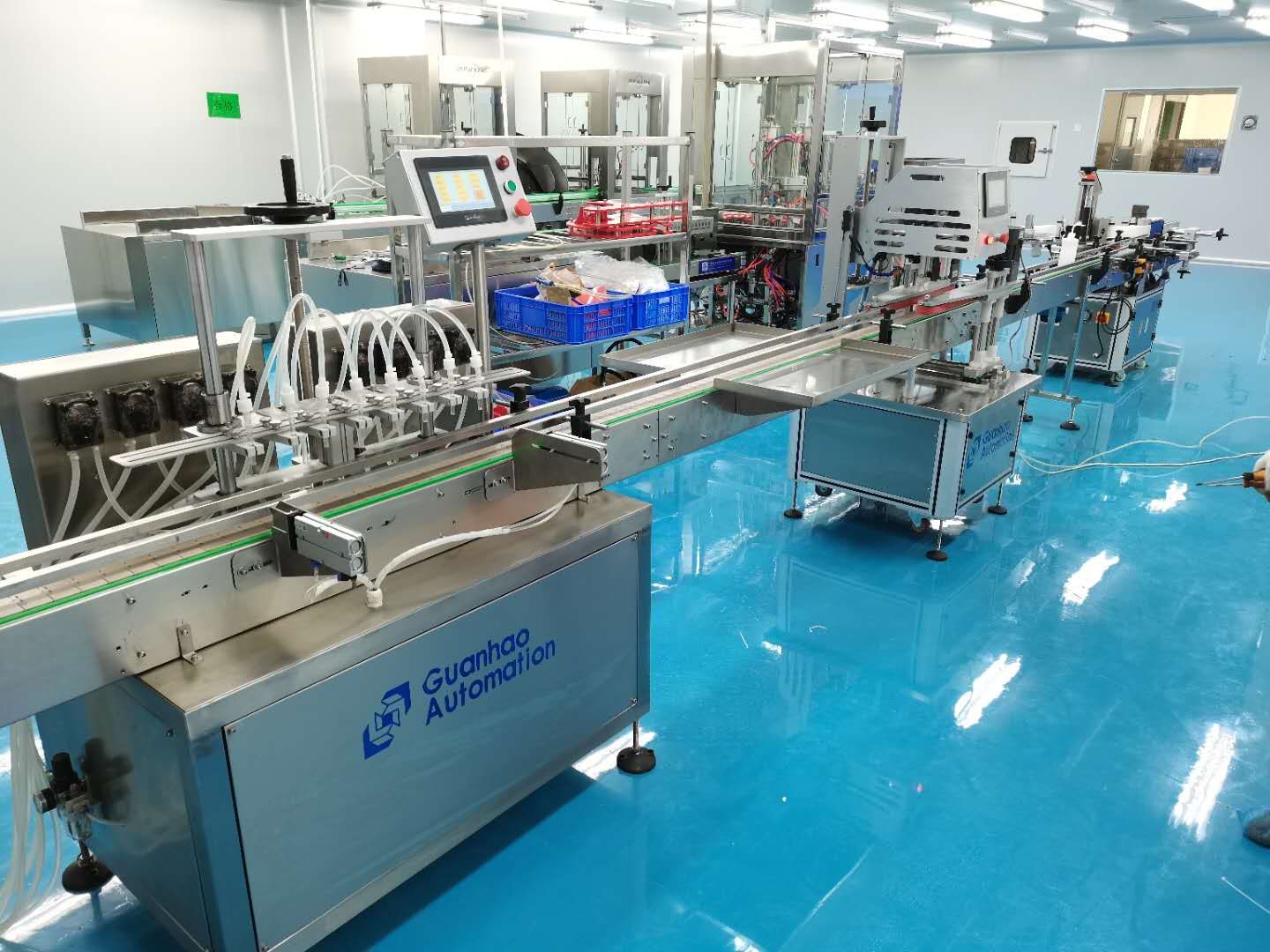 灌裝機(jī),旋蓋機(jī),貼標(biāo)機(jī),已完成生產(chǎn)車間安裝調(diào)試