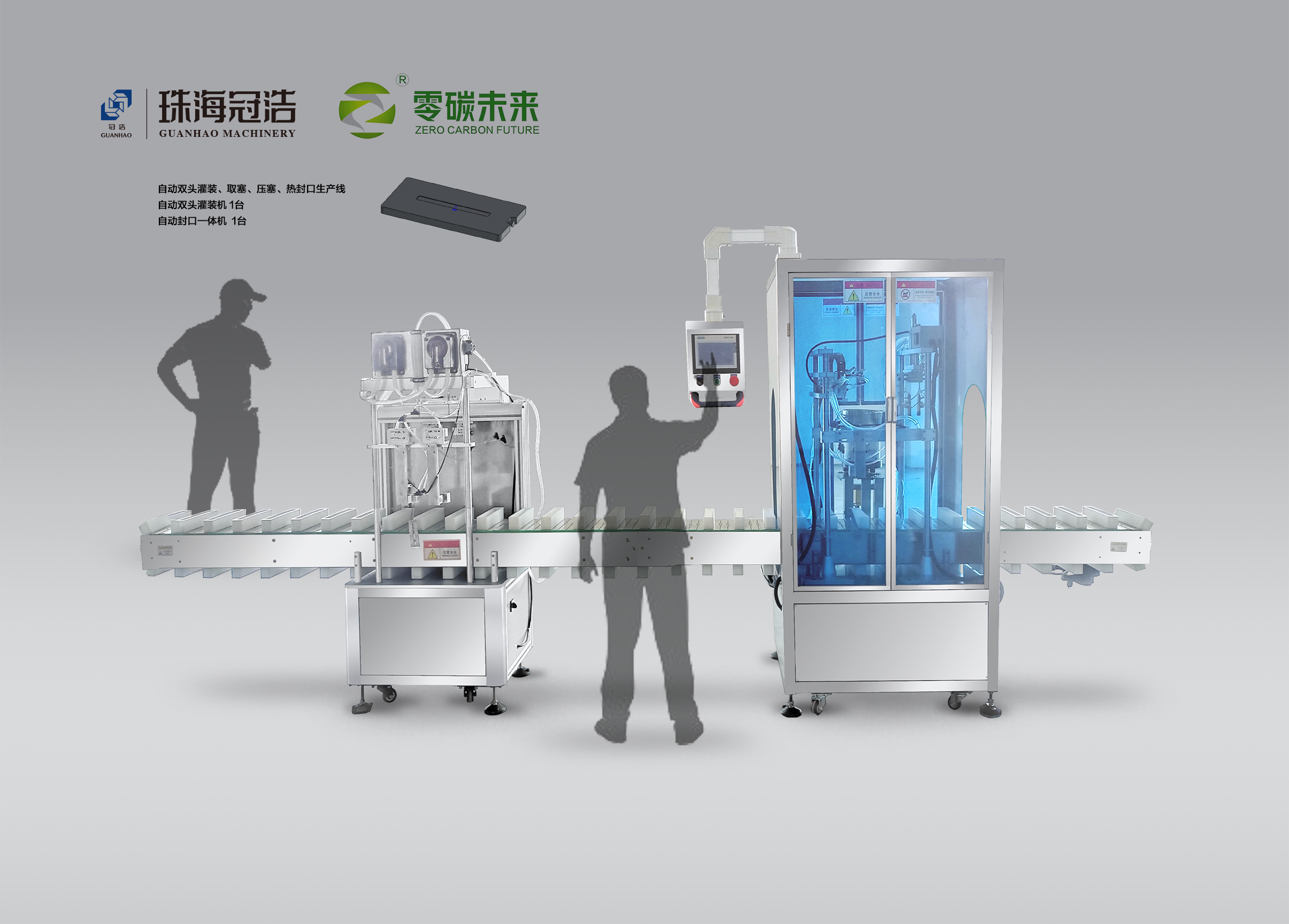 能源領(lǐng)域新型材料的探索研發(fā),解決了市場(chǎng)需求能源浪費(fèi)的問(wèn)題。此次合作也為我司填補(bǔ)了能源新型材料機(jī)械應(yīng)用的空白,整套生產(chǎn)線(xiàn)包括自動(dòng)雙頭灌裝、取塞、壓塞、熱封口于一體,送瓶模式采用整線(xiàn)循環(huán)工位,瓶蓋采用塑料內(nèi)塞,生產(chǎn)產(chǎn)能達(dá)至120-600瓶/小時(shí),為零碳未來(lái)能源科技大大節(jié)省了人工,提高了效率,實(shí)現(xiàn)產(chǎn)量最大化。
